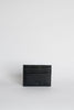 Leather card holder with slots for 6 cards and an internal pocket for folded bills or papers.