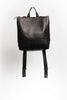 Natural-grained leather unlined backpack. Features an unlined interior with a bronze top metal zip, an open internal pocket, and an external zipper pocket at the back.